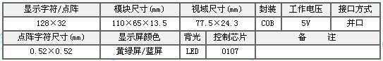 - 描述:顯示點陣:128X32 品牌:金鵬 帶中文字庫,模塊尺寸:84X44X14.2 視域尺寸:70X20 控制IC:7920,封裝COB 本液晶詳細資料在內頁